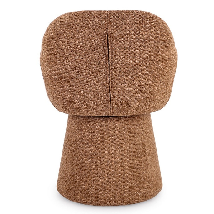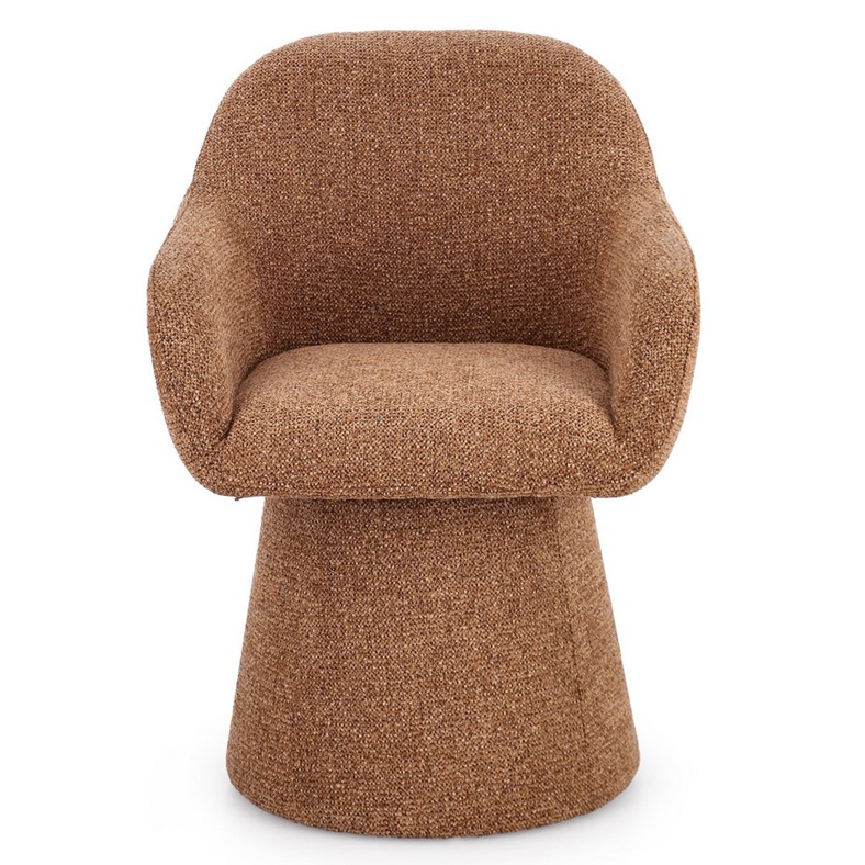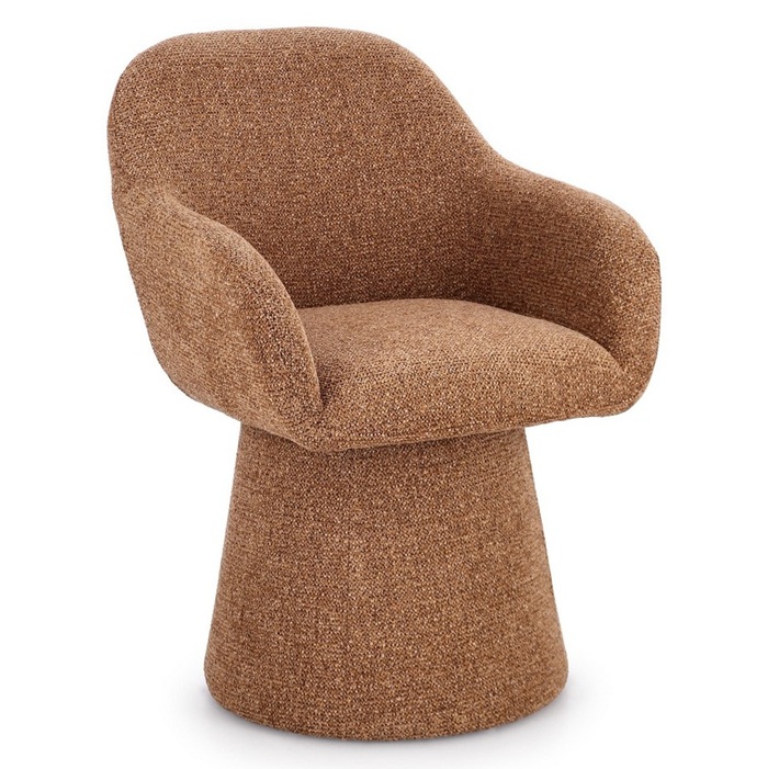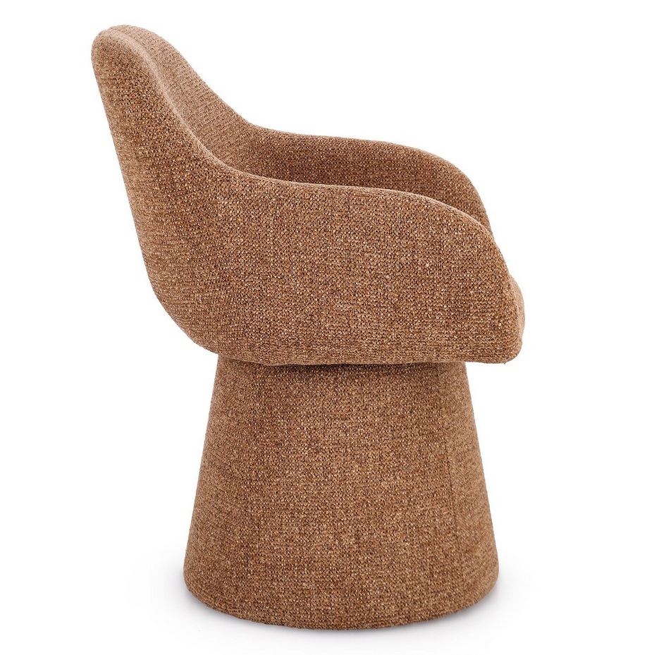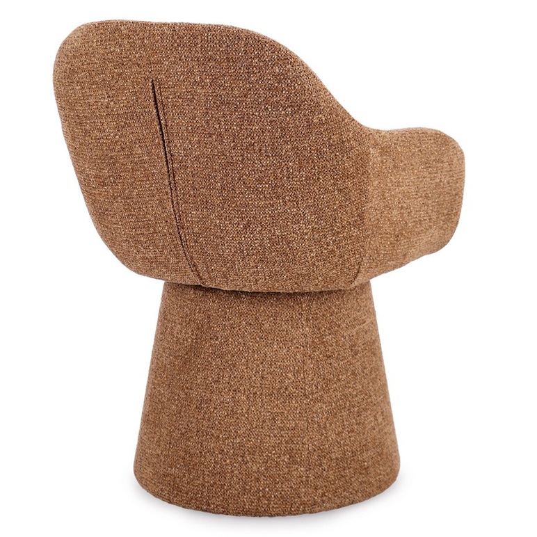 Precioso sillón con reposabrazos y giratorio, de diseño moderno, con estructura de madera y acero y tapizado totalmente en tela color terracota.