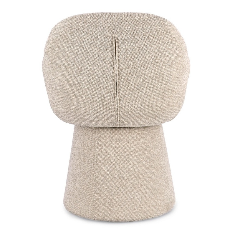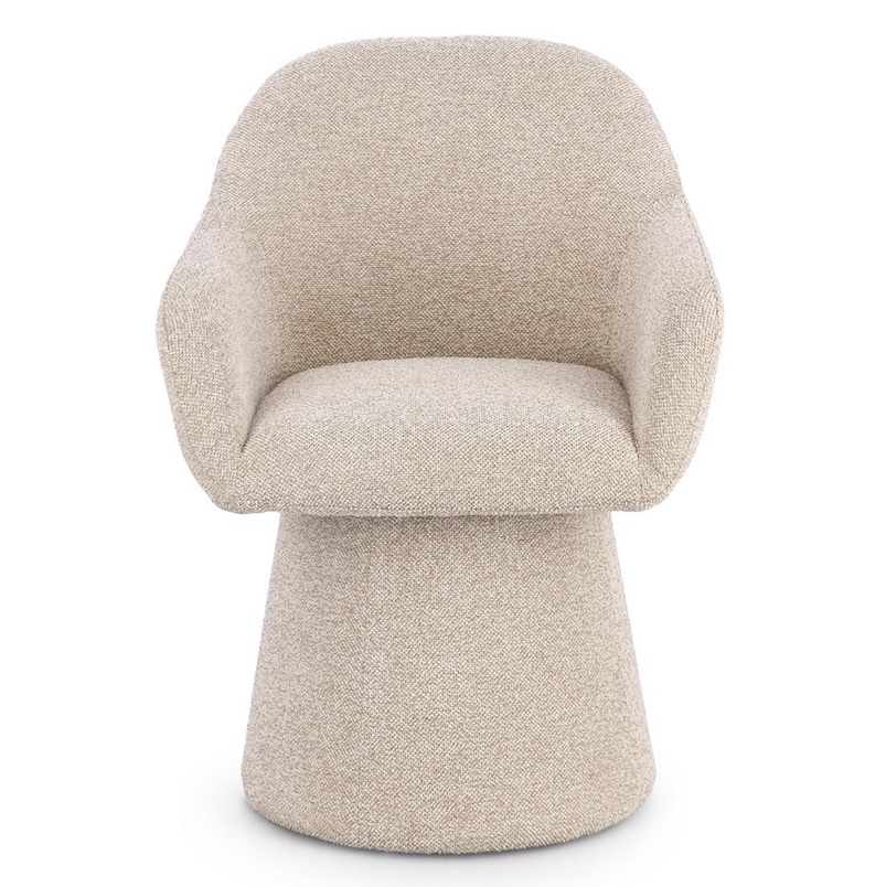 Características: ESTRUCTURA DE ACERO Y MADERA CONTRACHAPADA. TAPIZADO DE 100% POLIÉSTER EFECTO BUCLÉ. RELLENO DE ESPUMA DE POLIURETANO DENSIDAD ASEINTO 28KG/M3 RESPALDO 24KG/M3. GIRATORIO 360°.