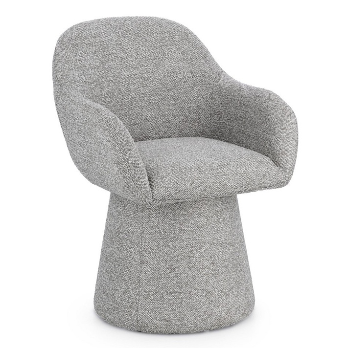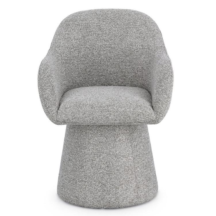 Características: ESTRUCTURA DE ACERO Y MADERA CONTRACHAPADA. TAPIZADO DE 100% POLIÉSTER EFECTO BUCLÉ. RELLENO DE ESPUMA DE POLIURETANO DENSIDAD ASEINTO 28KG/M3 RESPALDO 24KG/M3. GIRATORIO 360°.