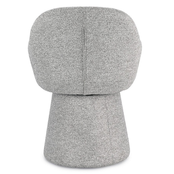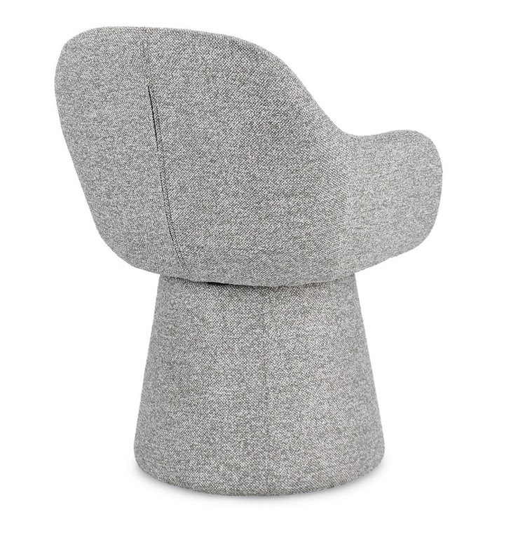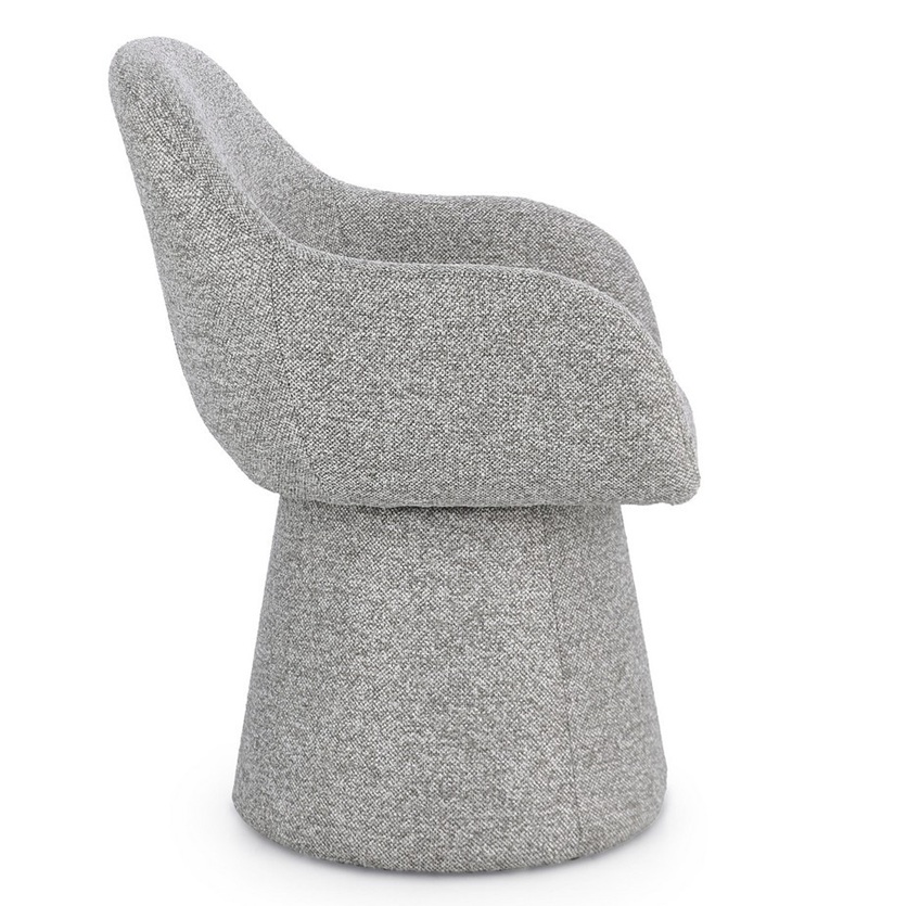 Precioso sillón con reposabrazos y giratorio, de diseño moderno, con estructura de madera y acero y tapizado totalmente en tela color gris.