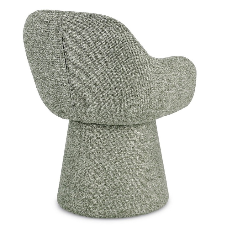 Precioso sillón con reposabrazos y giratorio, de diseño moderno, con estructura de madera y acero y tapizado totalmente en tela color verde.