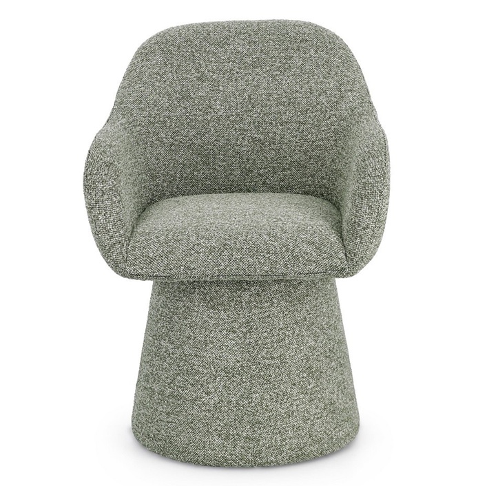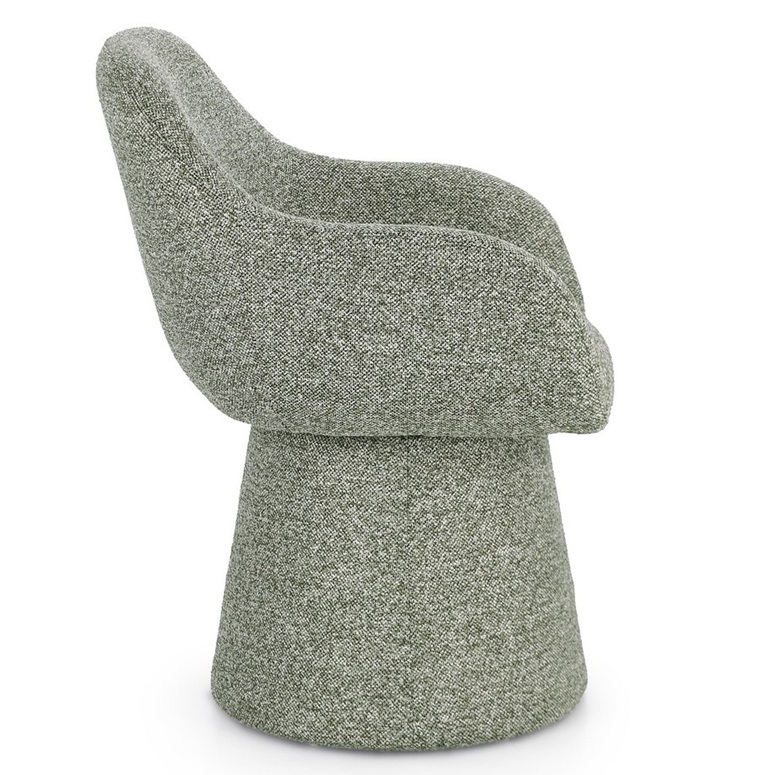 Características: ESTRUCTURA DE ACERO Y MADERA CONTRACHAPADA. TAPIZADO DE 100% POLIÉSTER EFECTO BUCLÉ. RELLENO DE ESPUMA DE POLIURETANO DENSIDAD ASEINTO 28KG/M3 RESPALDO 24KG/M3. GIRATORIO 360°.