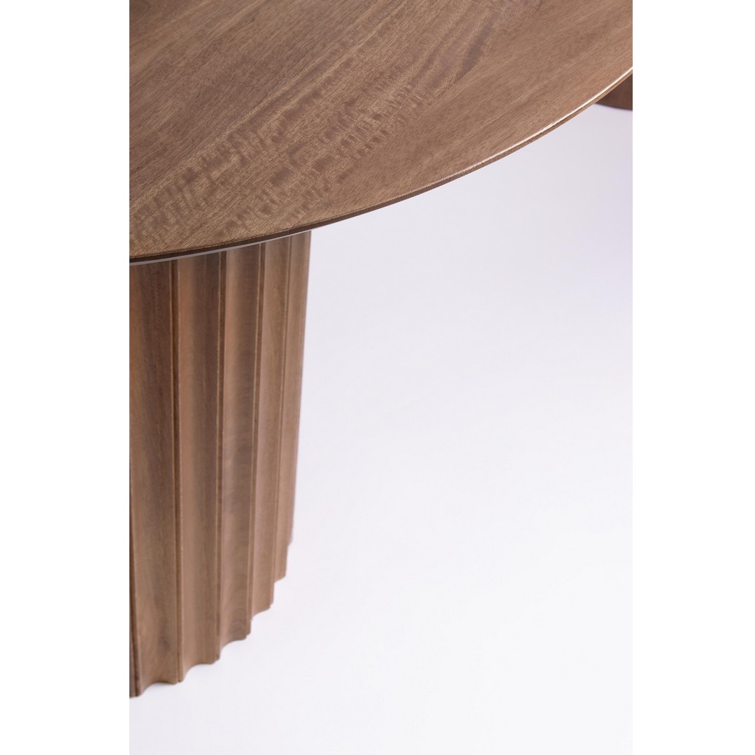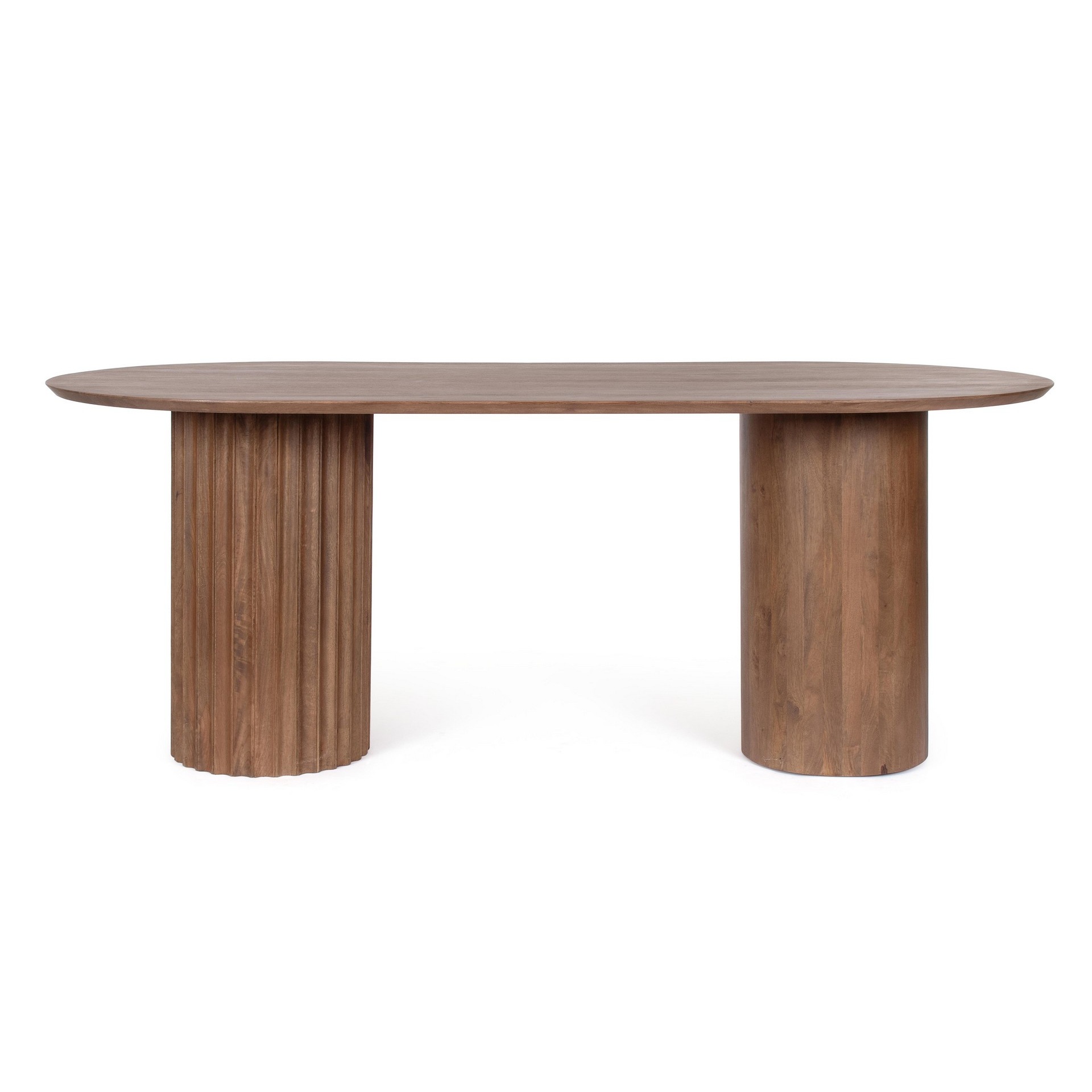 Espectacular mesa de comedor de gran tamaño, de diseño moderno e inspiración rústica, fabricada en madera de mango con acabado a base de nitrocelulosa. Con cantos redondeados y originales patas cilíndricas.