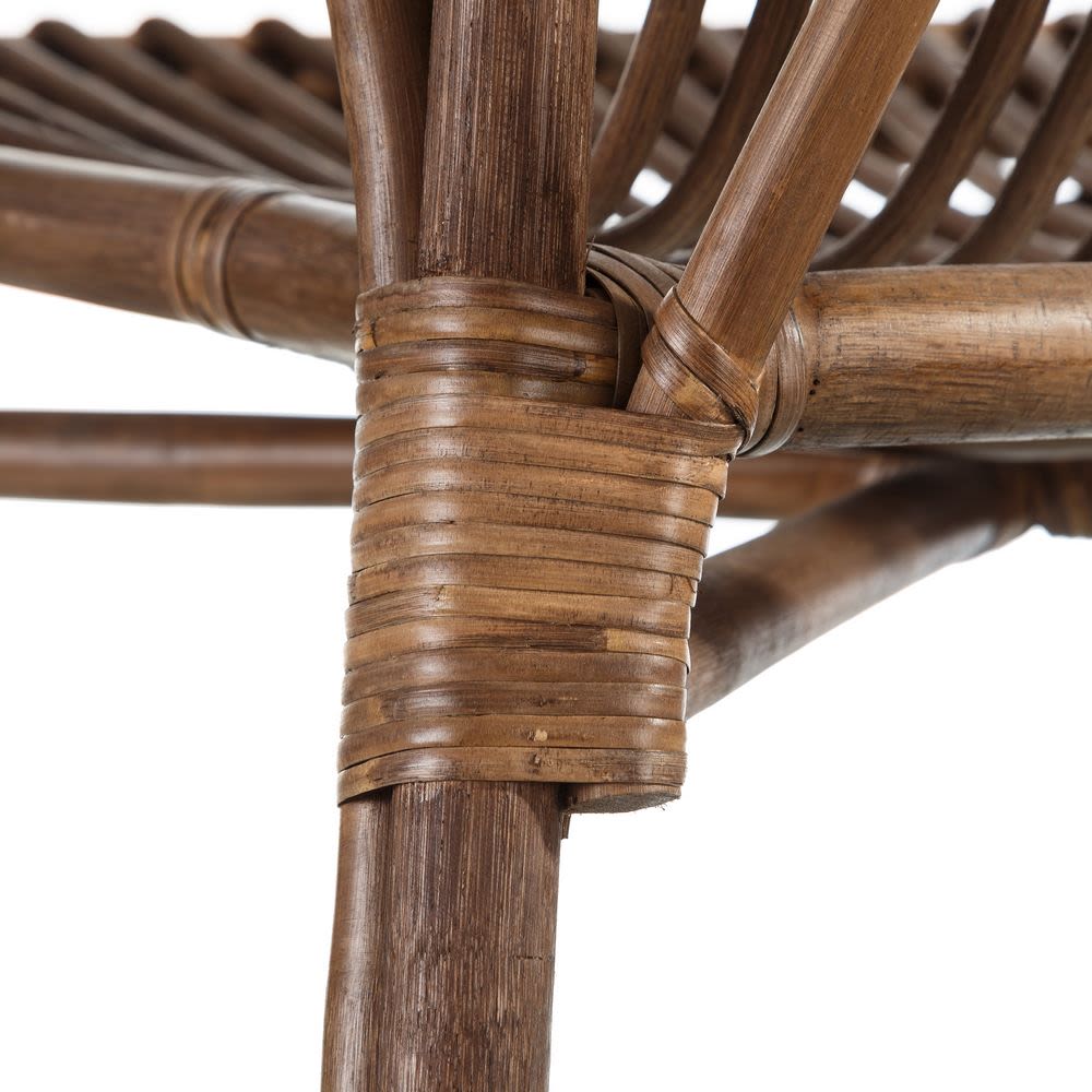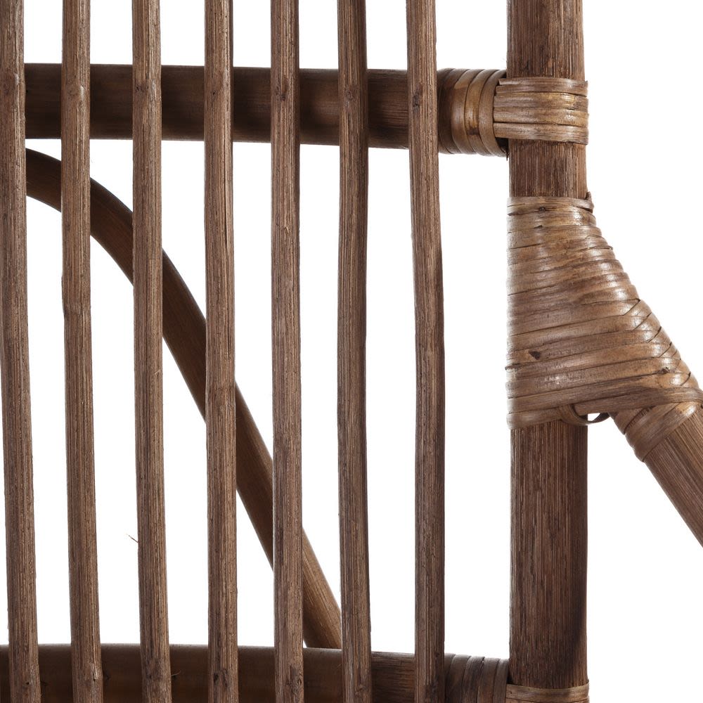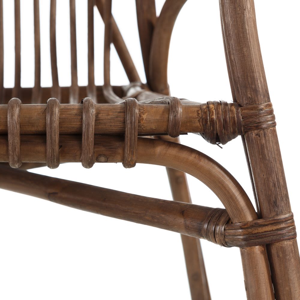 Deliciosa silla de diseño vintage y asiento bajo fabricada en bonito rattán color marrón. Se trata de una pieza que llenará de personalidad la estancia en la que decidas incorporarla.