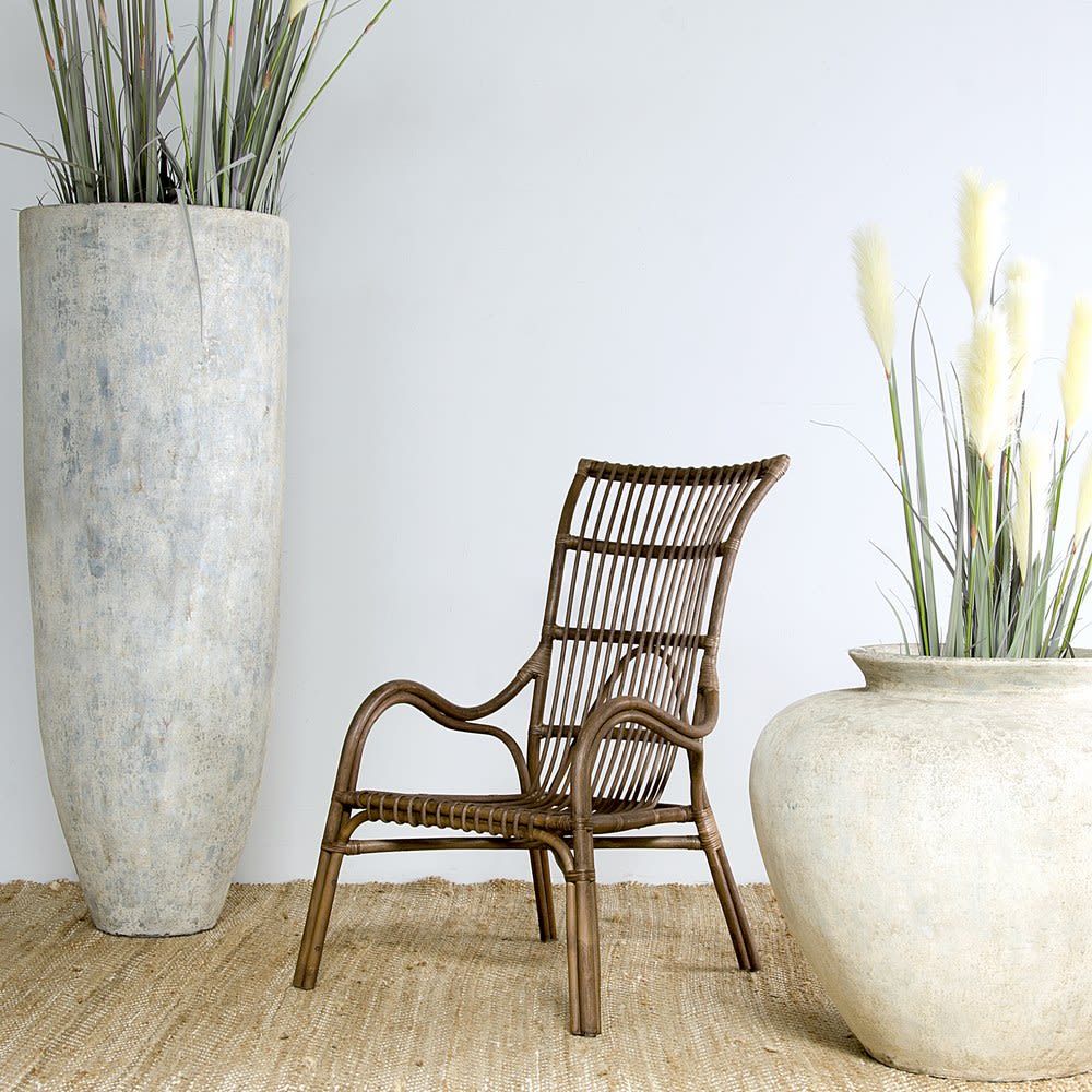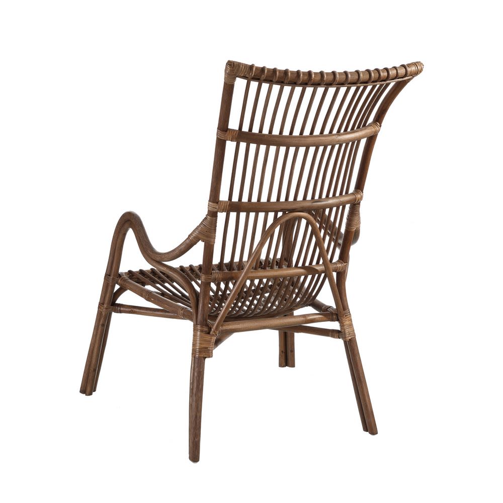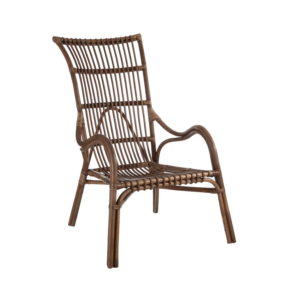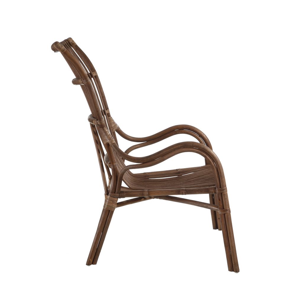 Deliciosa silla de diseño vintage y asiento bajo fabricada en bonito rattán color marrón. Se trata de una pieza que llenará de personalidad la estancia en la que decidas incorporarla.