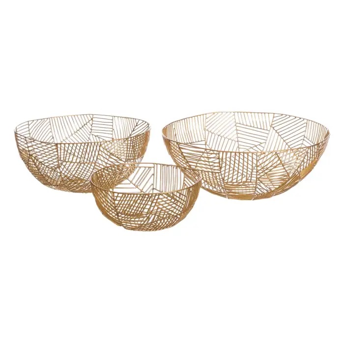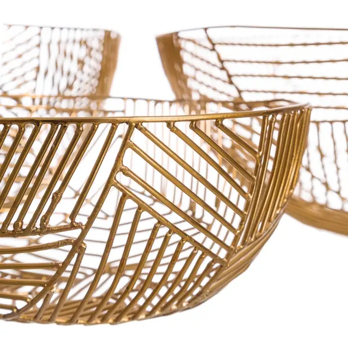 Original set compuesto por tres centros de mesa decorativos fabricado en hierro acabado color oro viejo.