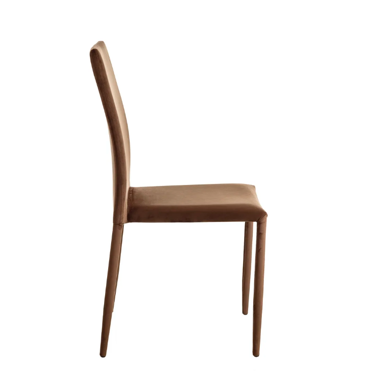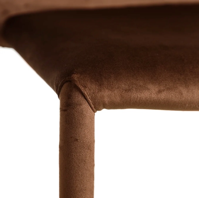 Elegante y original silla de diseño moderno con estructura de hierro y tapizada por completo en precioso terciopelo color marrón.