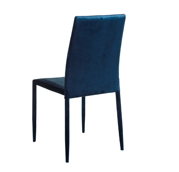 Elegante y original silla de diseño moderno con estructura de hierro y tapizada por completo en precioso terciopelo color azul.