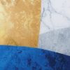 Set de dos cuadros abstractos de impresión en lámina acrílica colores oro y azul. Marco fabricado en aluminio acabado color oro.