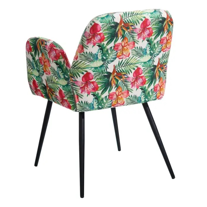 108304 Silla con reposabrazos de diseño vintage tela de flores y patas metal negro