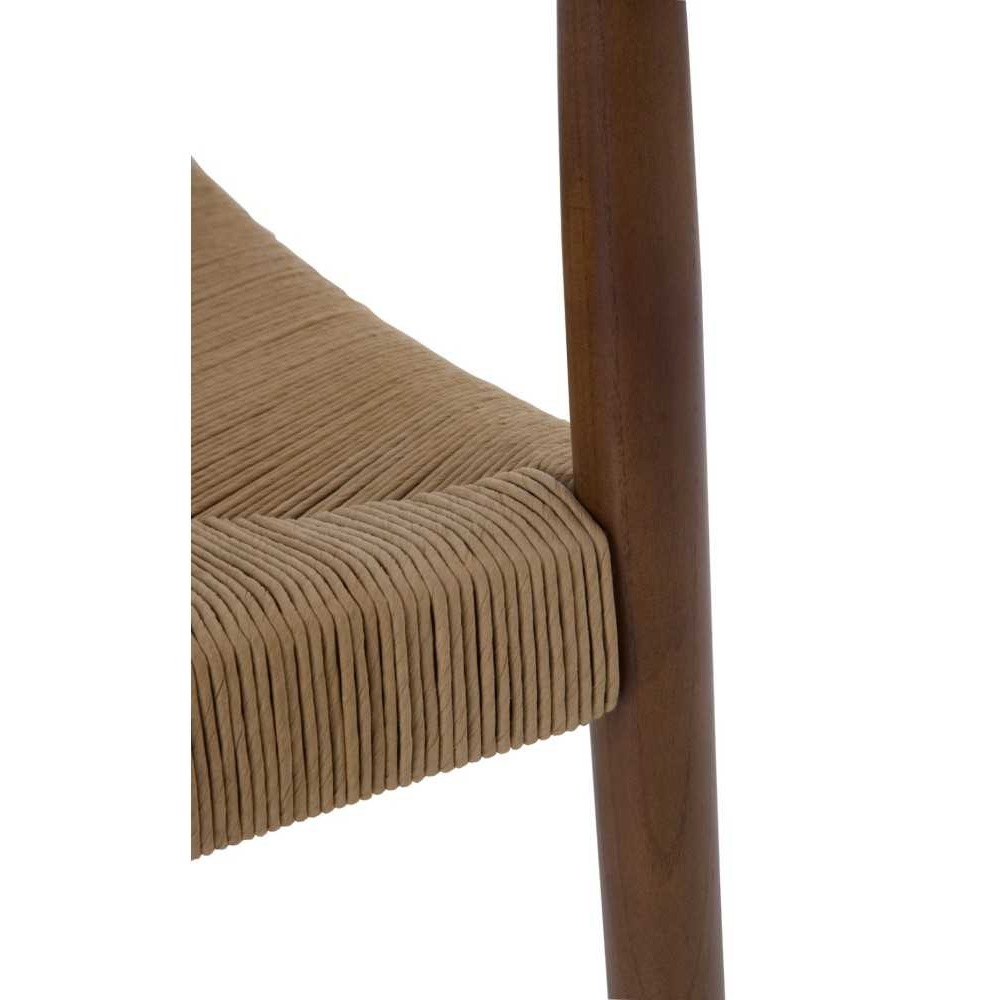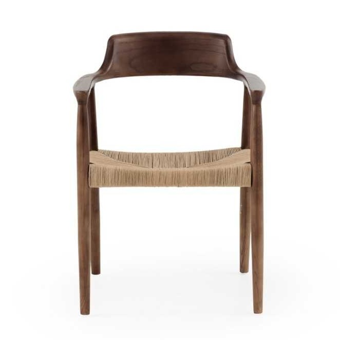 Irresistible silla con reposabrazos, de diseño vintage e inspiración nórdica, con estructura de madera de toon en bonito acabado color nogal y asiento de cuerda trenzada.