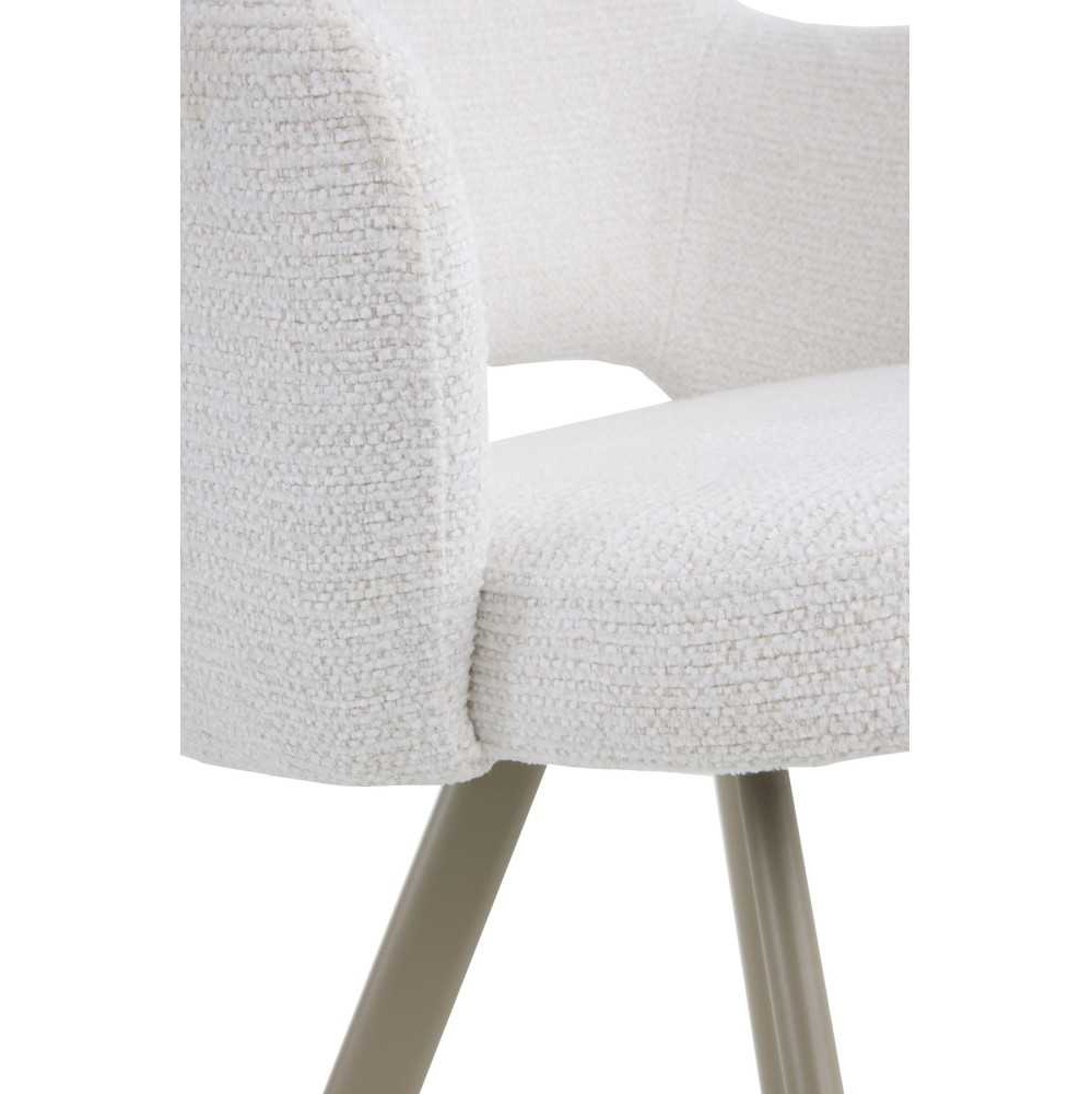 Irresistible silla con reposabrazos, de diseño moderno, con patas de metal color topo y bonito tapizado en chenilla crema.