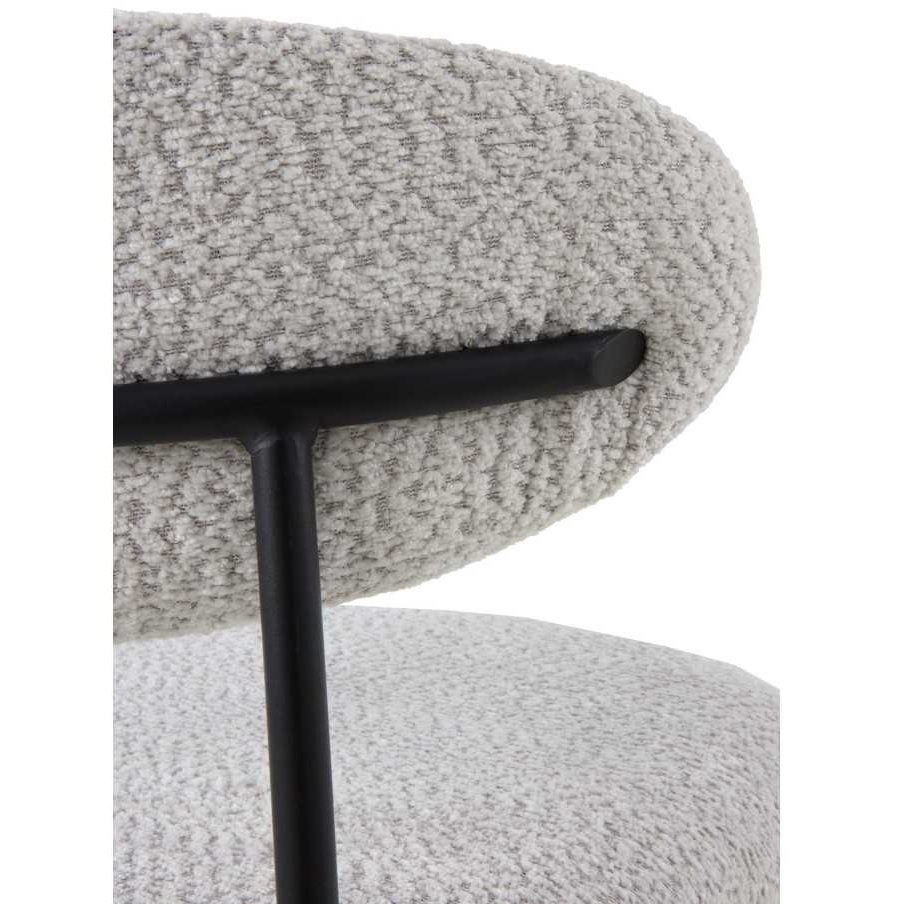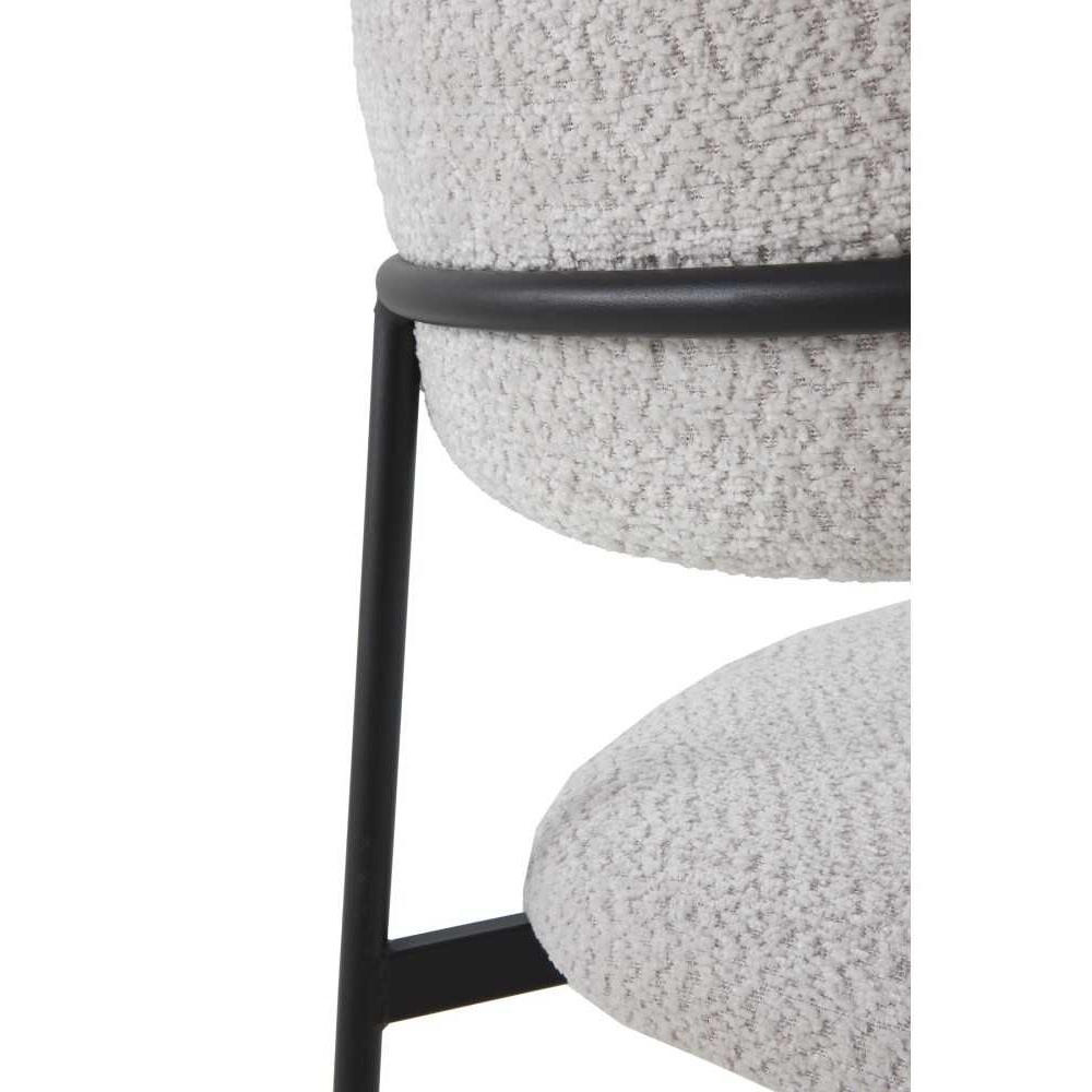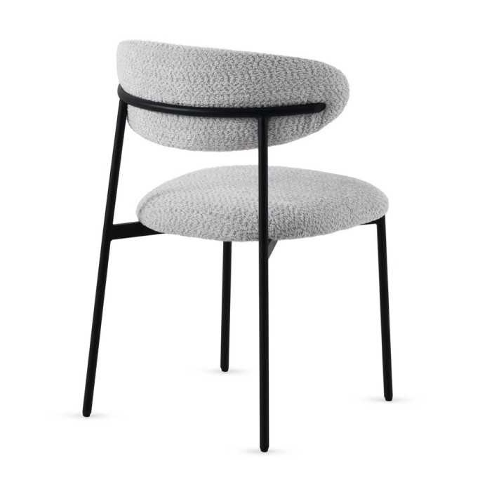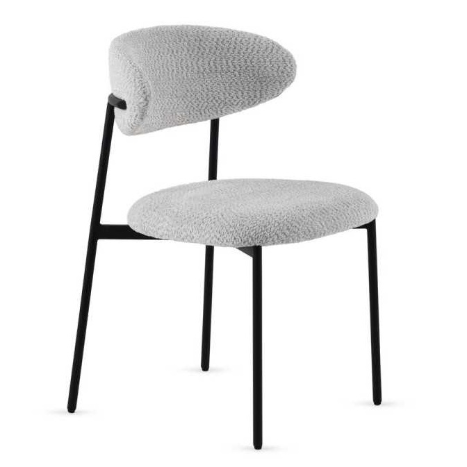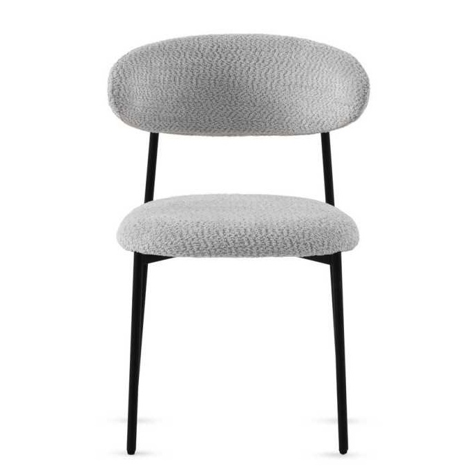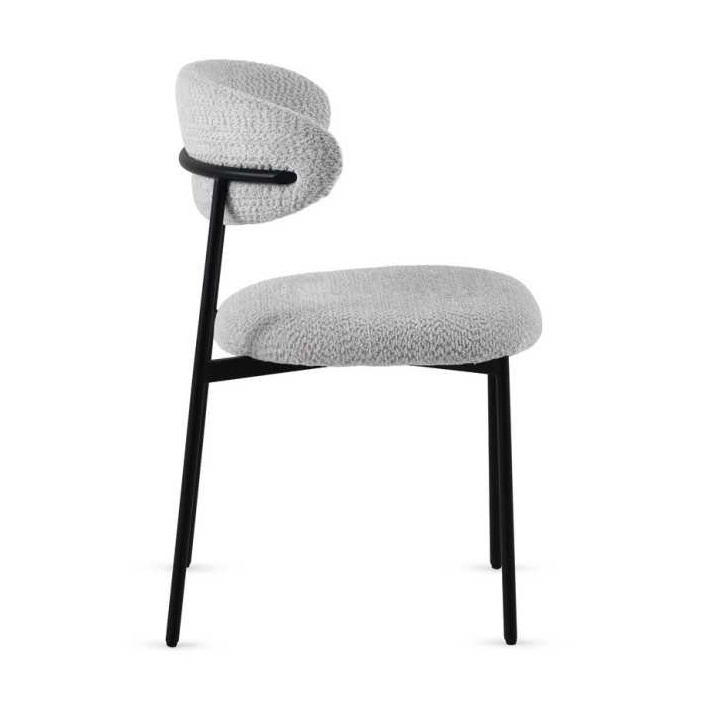 Elegante y confortable silla, de diseño moderno, con estructura de metal negro y bonito tapizado en chenilla color gris claro.
