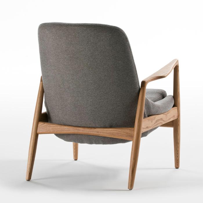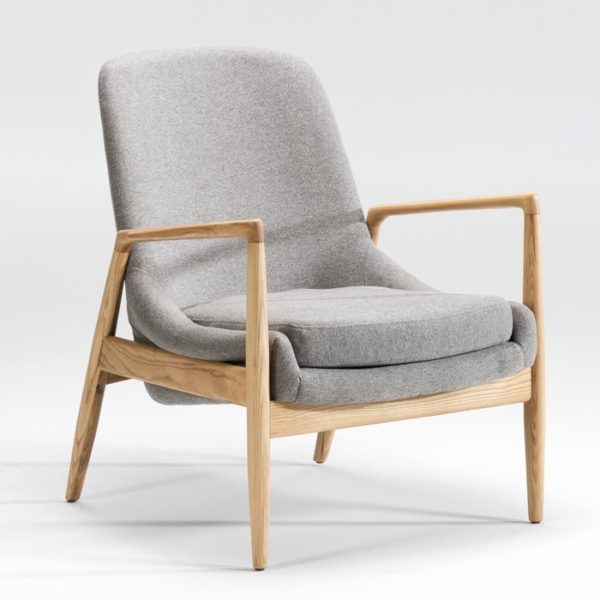 15701 Sillón de diseño nórdico 76 tapizado gris y madera natural
