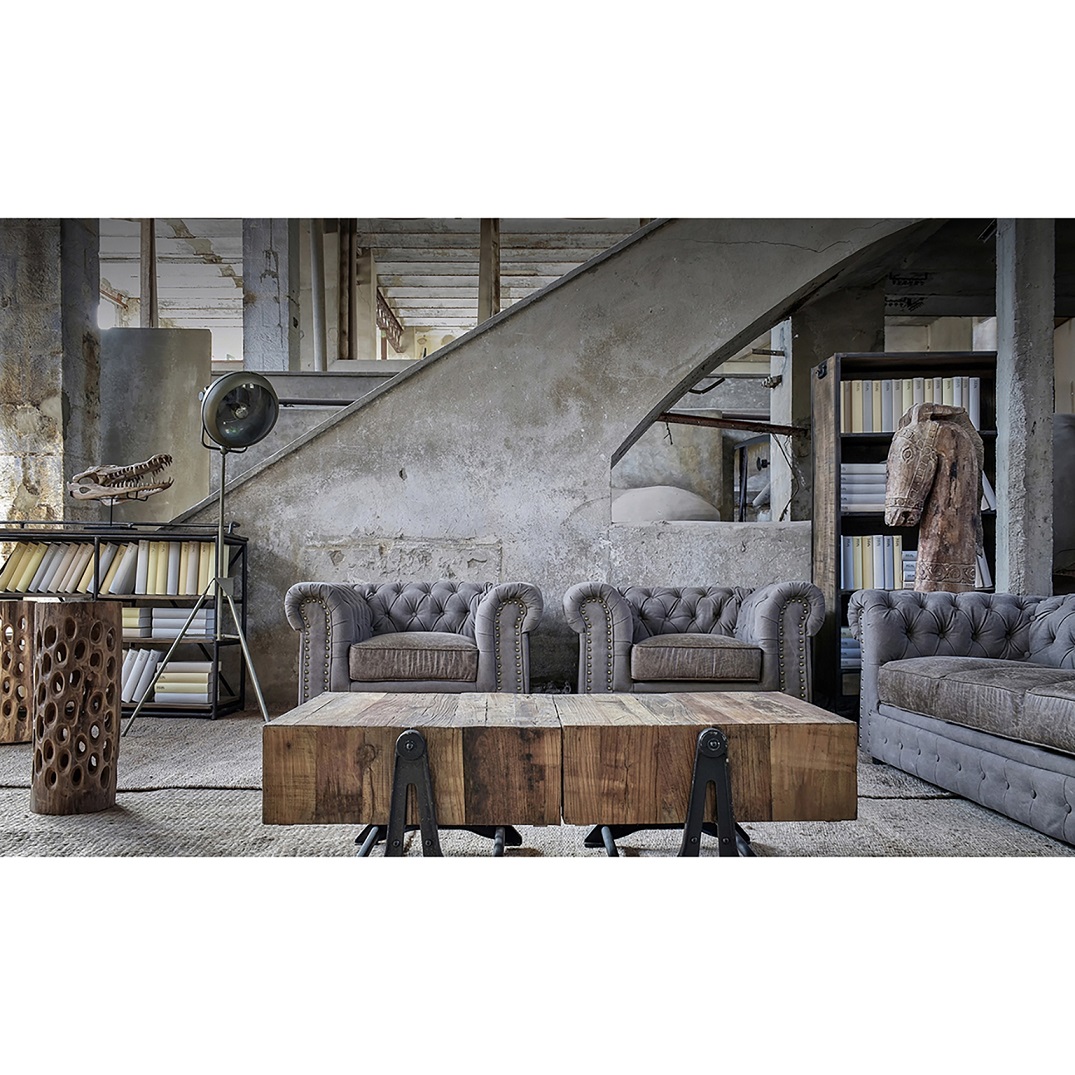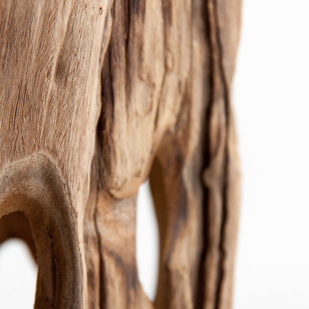 Original y exclusivo jarrón decorativo de estilo rústico fabricado en madera de teka color natural acabado envejecido.