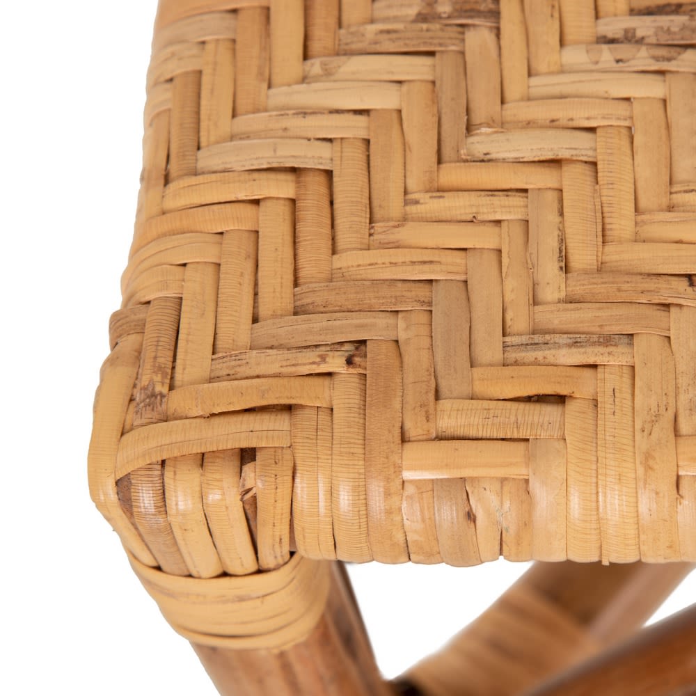 Preciosa silla de diseño vintage con respaldo redondeado fabricada en bonito ratán trenzado acabado natural. Se trata de una pieza que llenará de personalidad la estancia en la que decidas incorporarla.