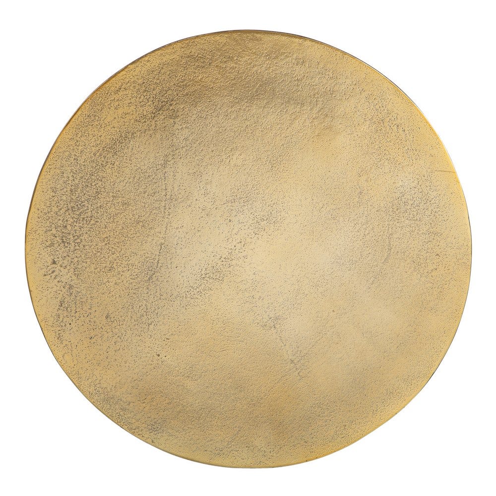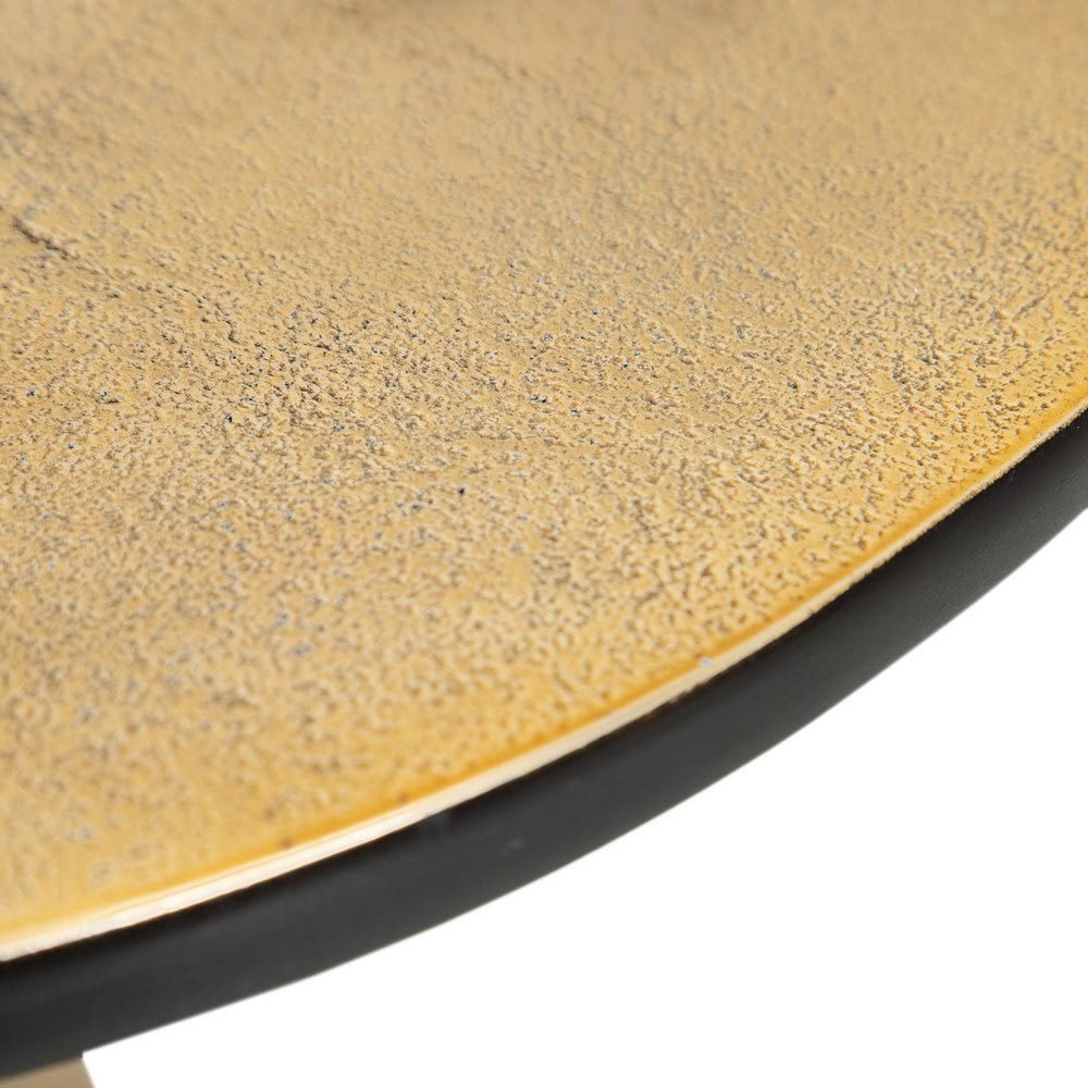 Sofisticada mesa auxiliar redonda de diseño Art Decó e inspiración vintage fabricada en metal con elegante acabado en colores negro y oro.