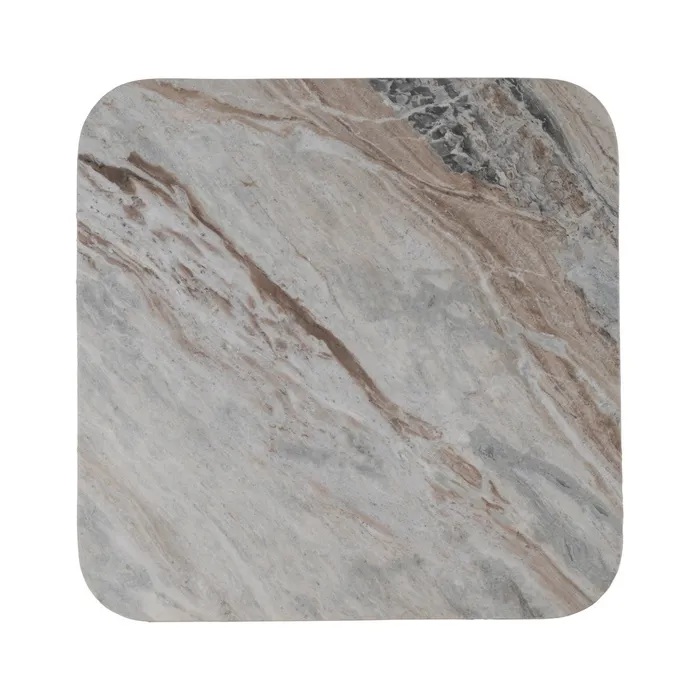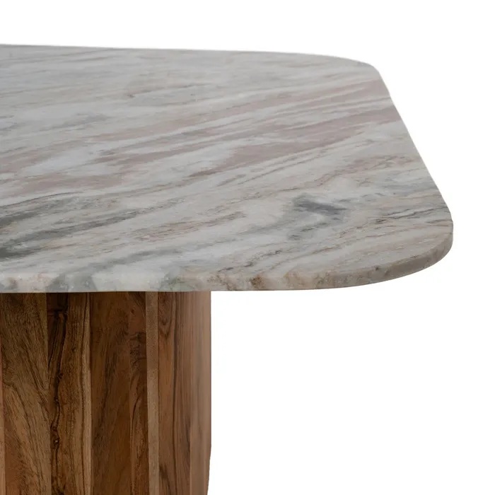 Material: mármol, madera de acacia. Medidas: 100x100x41cm – 80x80x36cm. El mármol es un material natural que puede tener variaciones en su aspecto. Peso: 99Kg.