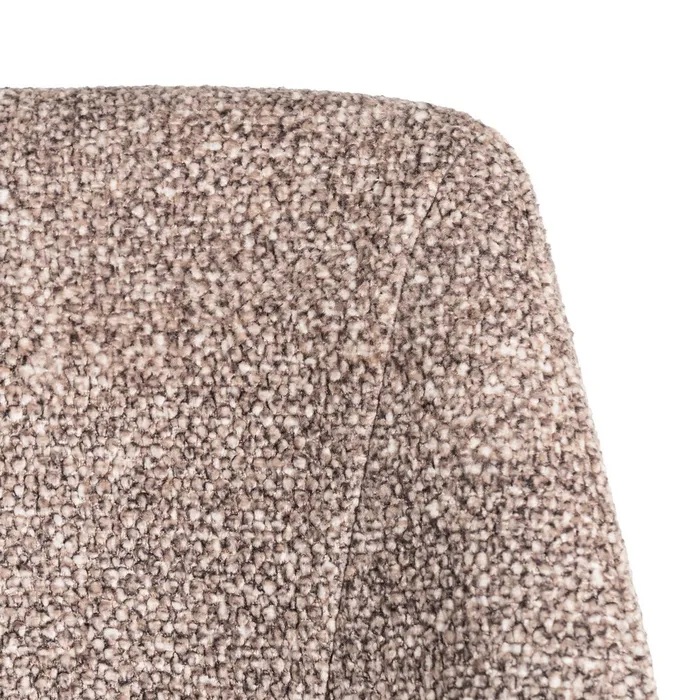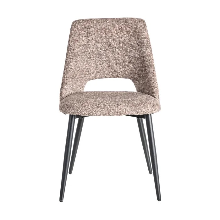 Elegante y confortable silla, de diseño moderno, con bonito tapizado jaspeado en color taupe y patas de hierro en color negro.