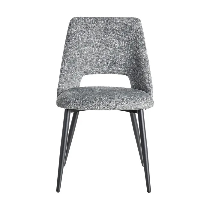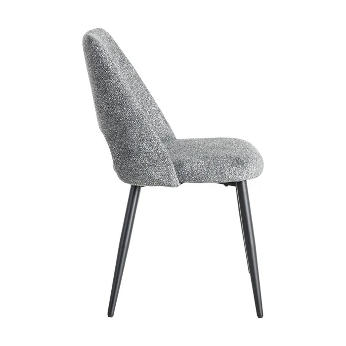 Elegante y confortable silla, de diseño moderno, con bonito tapizado jaspeado en color verde y patas de hierro en color negro.