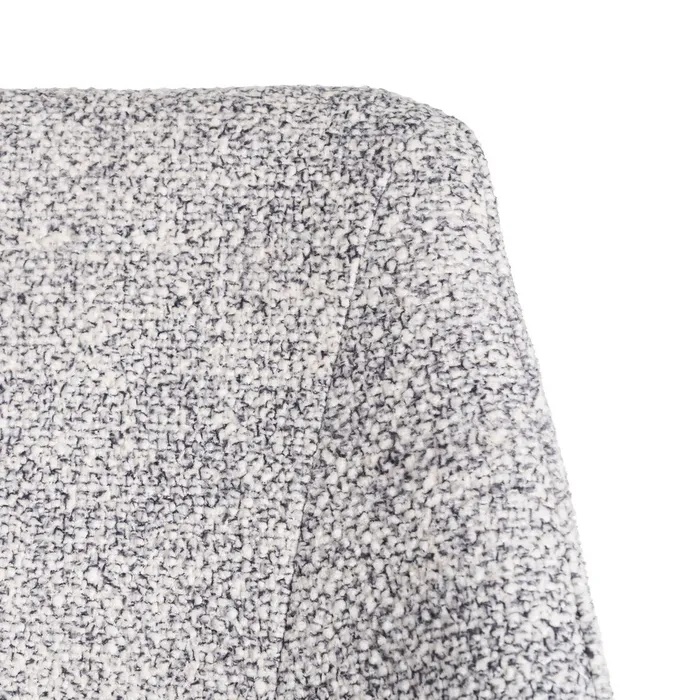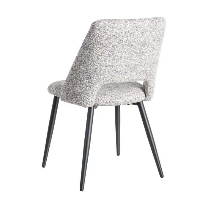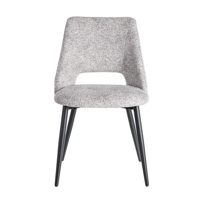 Elegante y confortable silla, de diseño moderno, con bonito tapizado jaspeado en color gris y patas de hierro en color negro.