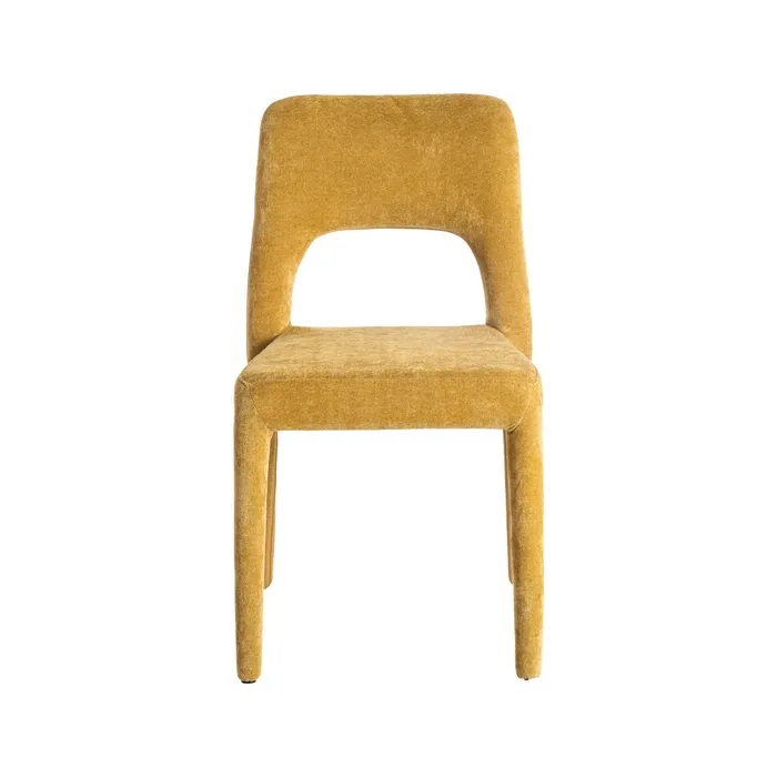 Elegante y confortable silla, de diseño moderno, con bonito tapizado total en tela color mostaza.