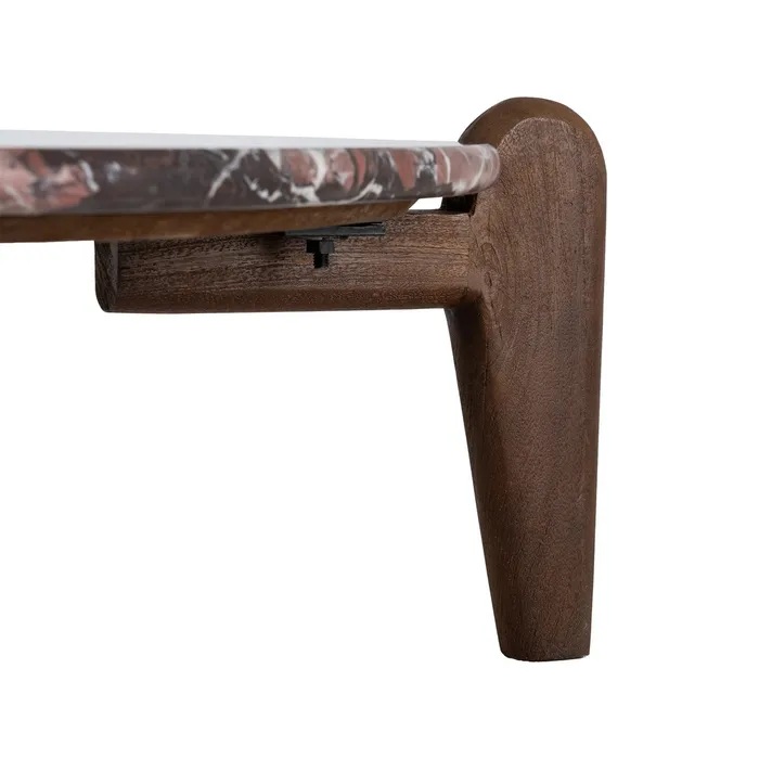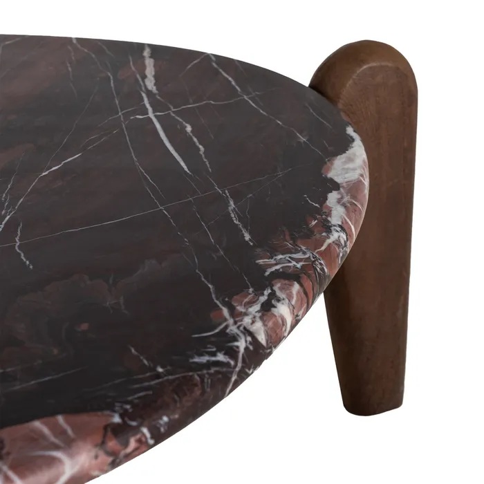 615637 Mesa de centro de diseño Art Decó 74 madera de mango y mármol rojizo formas irregulares