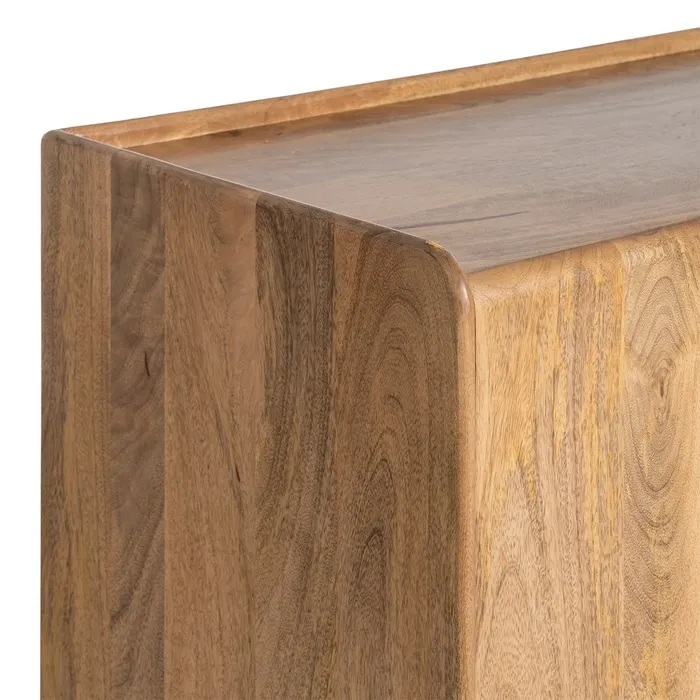 Robusto aparador, de diseño rústico e inspiración nórdica, fabricado en madera de mango con bonito acabado en color natural. Tiene 2 puertas y 2 cajones en la parte central del mueble.