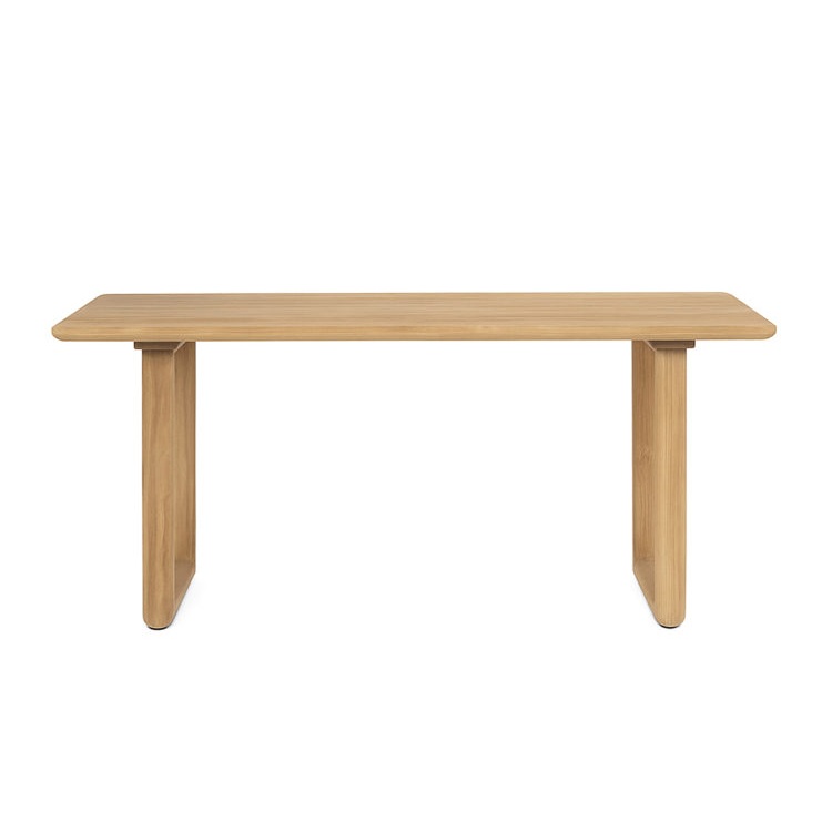 Irresistible mesa de comedor, de diseño rústico e inspiración nórdica, fabricada en madera maciza de teka con bonito acabado en color natural y cantos ligeramente redondeados.