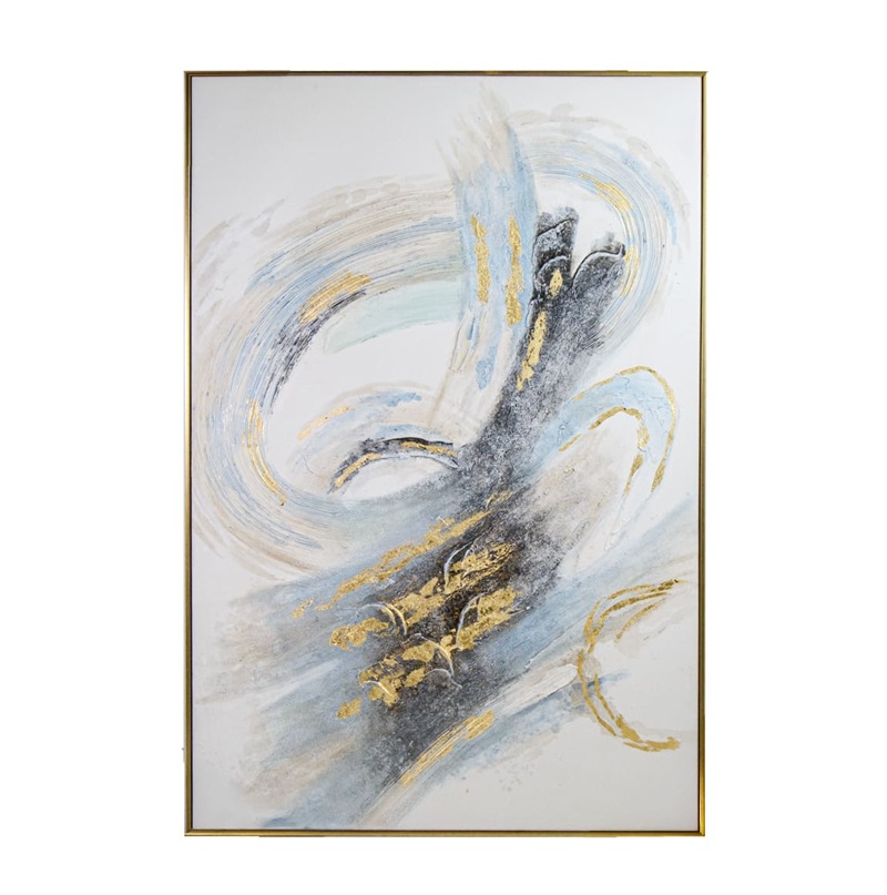 Elegante y sofisticado cuadro enmarcado de gran tamaño y diseño abstracto pintado a mano con sus característicos trazos. SISTEMA DE ANCLAJE INCLUÍDO QUE PERMITE LA COLOCACIÓN EN DISTINTAS POSICIONES.