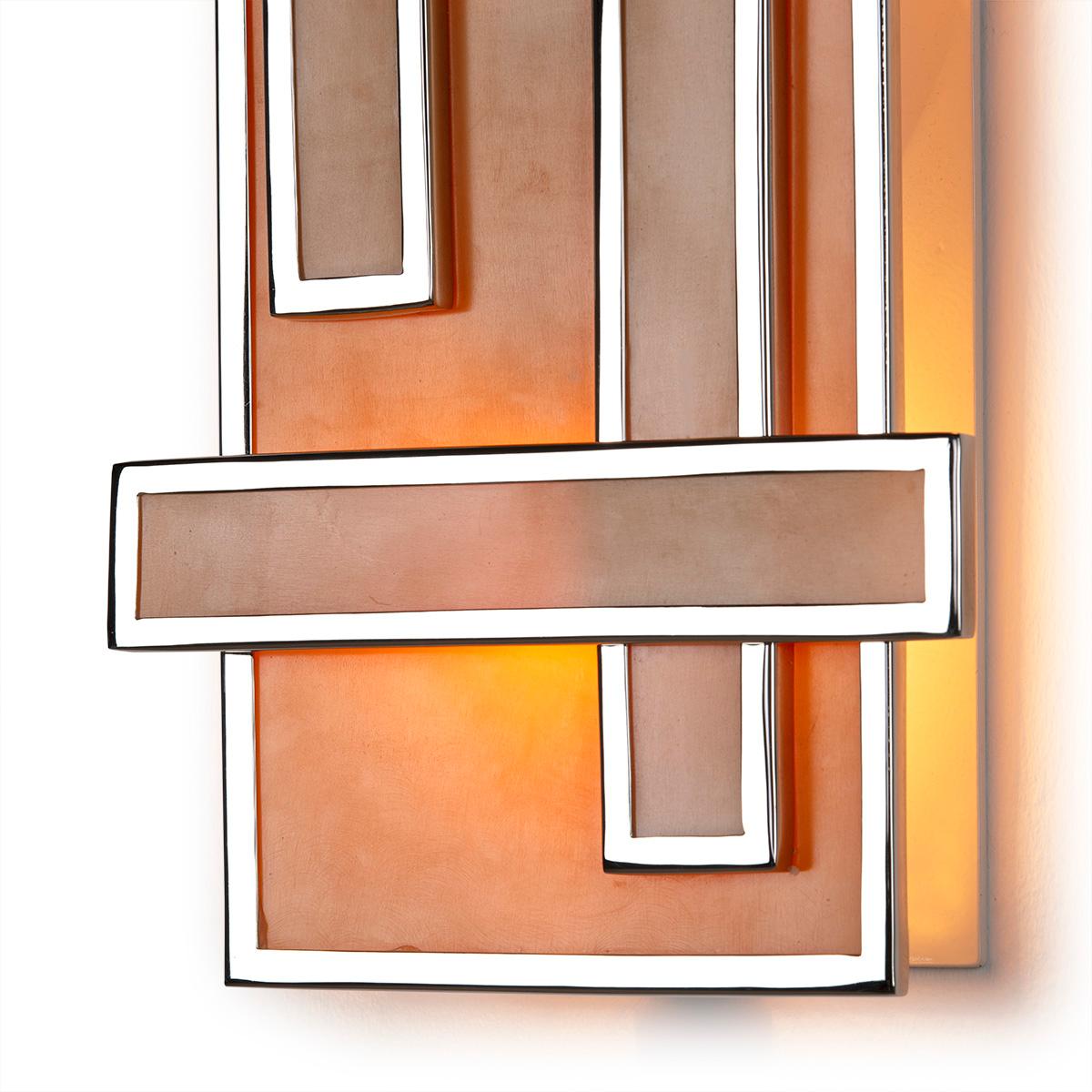 Original aplique o lámpara de pared de diseño moderno fabricado en acrílico y metal con bonito acabado en color ámbar con detalles en plateado.