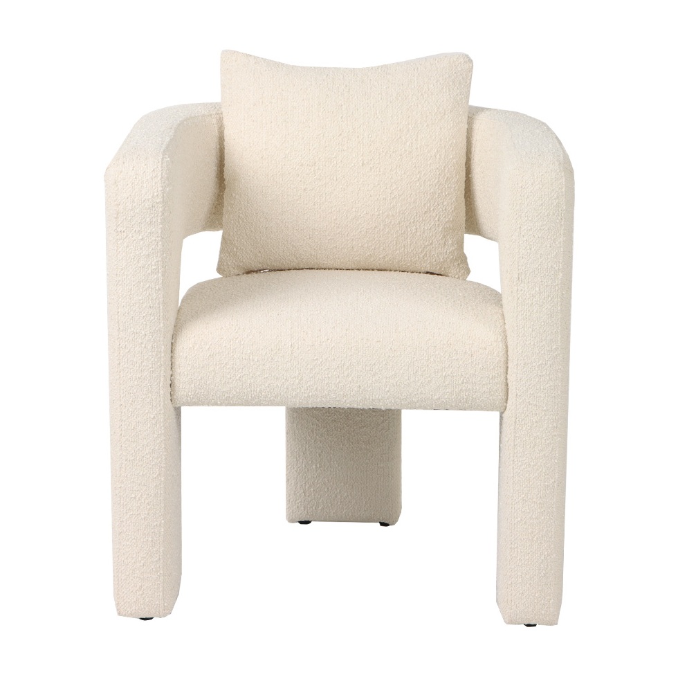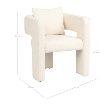 Irresistible y confortable sillón butaca con reposabrazos, de diseño moderno e inspiración nórdica, con formas redondeadas y tapizado totalmente en teddy color blanco.